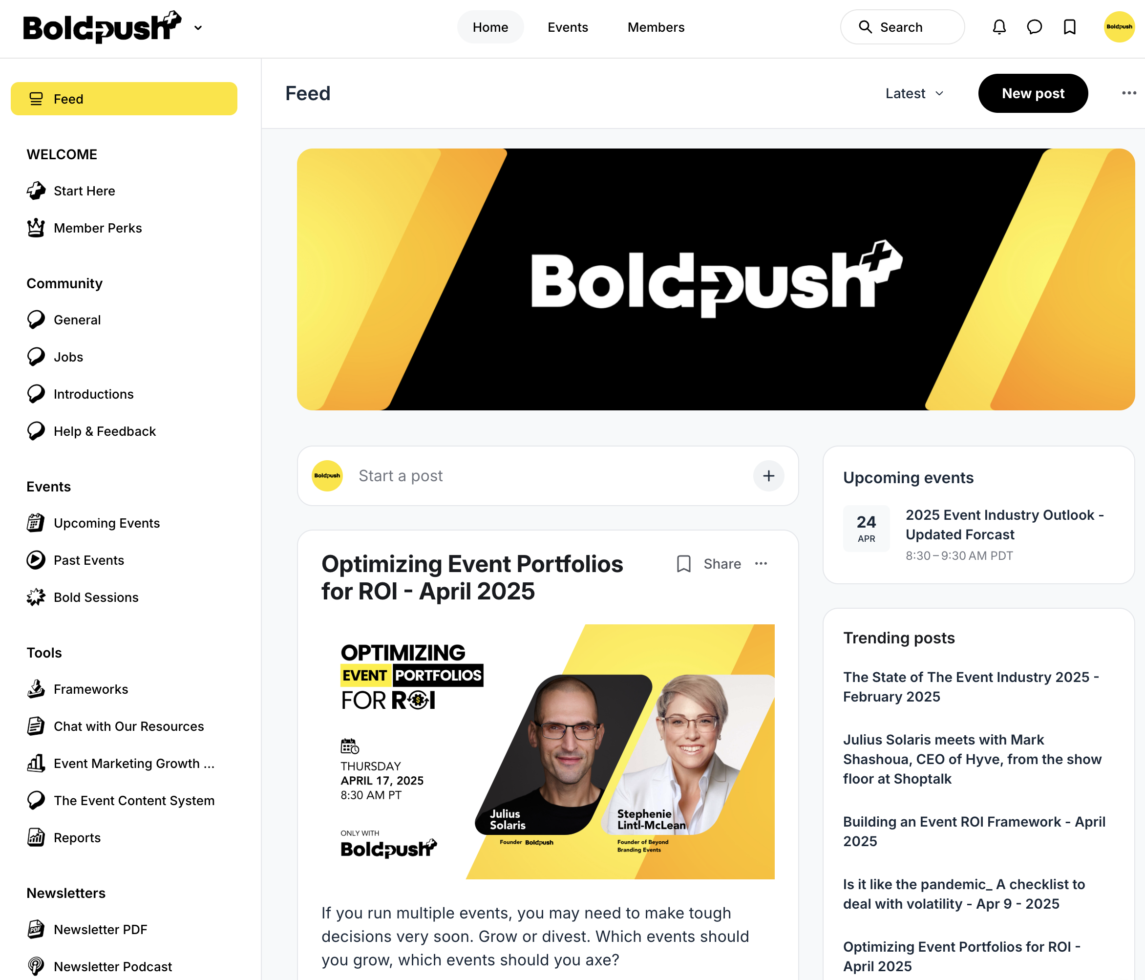 Because as we all know, the event world is a game of speed and innovation and with Boldpush+, we’re aiming to keep all of the members ahead of the curve, as soon as possible.